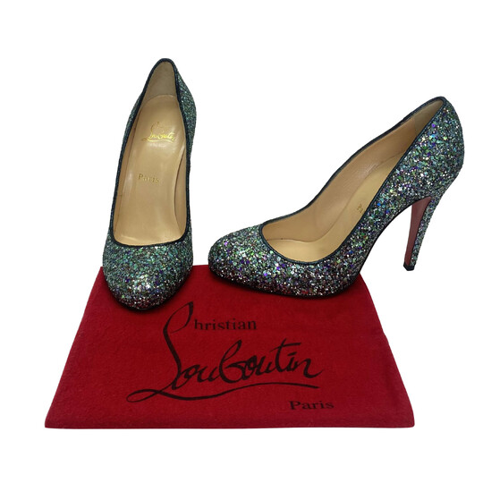 Sapato Christian Louboutin Glitter Multicolor Moda plus size original brechó desapego desapego de luxo segunda mão second hand usado usado e bom estado conservado bolsas usadas bolsas segunda mao etiqueta unica enjoei peguei bode bolsas conservadas cansei vendi troca de luxo
