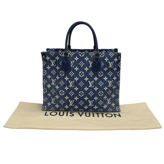 Bolsa Louis Vuitton OnThego MM Denim Moda plus size original brechó desapego desapego de luxo segunda mão second hand usado usado e bom estado conservado bolsas usadas bolsas segunda mao etiqueta unica enjoei peguei bode bolsas conservadas cansei vendi troca de luxo