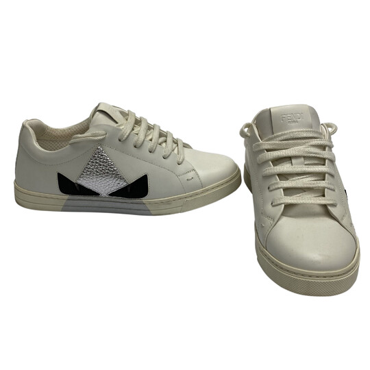 Tênis Fendi Bag Bugs Couro Branco Moda plus size original brechó desapego desapego de luxo segunda mão second hand usado usado e bom estado conservado bolsas usadas bolsas segunda mao etiqueta unica enjoei peguei bode bolsas conservadas cansei vendi troca de luxo