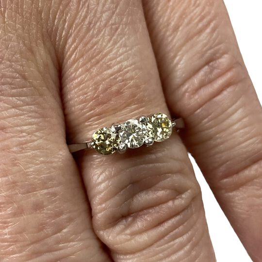 Anel Ouro Branco Trio - 0.6 ct. Moda plus size original brechó desapego desapego de luxo segunda mão second hand usado usado e bom estado conservado bolsas usadas bolsas segunda mao etiqueta unica enjoei peguei bode bolsas conservadas cansei vendi troca de luxo E7313