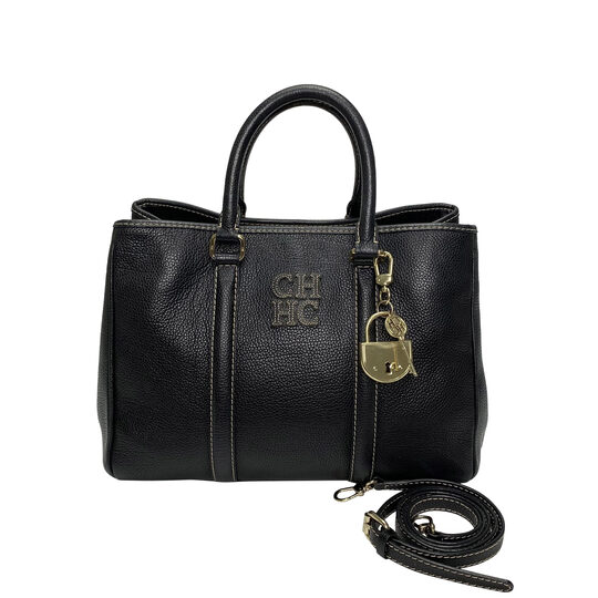 Bolsa Carolina Herrera Couro Preta Moda plus size original brechó desapego desapego de luxo segunda mão second hand usado usado e bom estado conservado bolsas usadas bolsas segunda mao etiqueta unica enjoei peguei bode bolsas conservadas cansei vendi troca de luxo