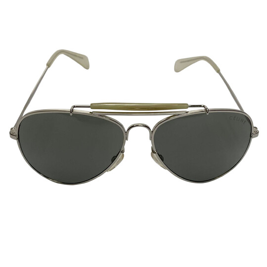 Óculos de Sol Céline Aviador - CL41490. O modelo é confeccionado em metal prateado com detalhe em acetato madrepérola.
