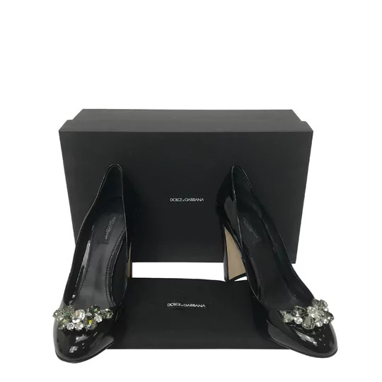Sapato Dolce & Gabbana Verniz Preto Pedraria scarpin preto dolce & gabbana dolce & gabbana scarpin preto pedraria Moda plus size original brechó desapego desapego de luxo segunda mão second hand usado usado e bom estado conservado bolsas usadas bolsas segunda mao etiqueta unica enjoei peguei bode bolsas conservadas
