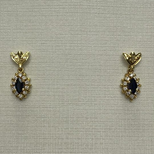 Par de Brincos Ouro Amarelo e Safiras Moda plus size original brechó desapego desapego de luxo segunda mão second hand usado usado e bom estado conservado bolsas usadas bolsas segunda mao etiqueta unica enjoei peguei bode bolsas conservadas cansei vendi troca de luxo M8470