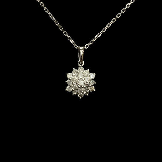 Colar Flor feito em ouro branco 18k com 19 diamantes lapidação brilhante que juntos somam 0.39 ct. Tamanho: 45 cm / Peso: 2.96g