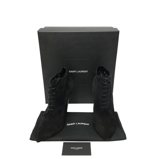 Ankle Boot Saint Laurent Camurça Preta saint laurent Moda plus size original brechó desapego desapego de luxo segunda mão second hand usado usado e bom estado conservado bolsas usadas bolsas segunda mao etiqueta unica enjoei peguei bode bolsas conservadas