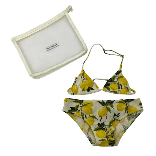 Biquíni Infantil Dolce & Gabbana confeccionado em tecido branco com estampa de limões sicilianos.