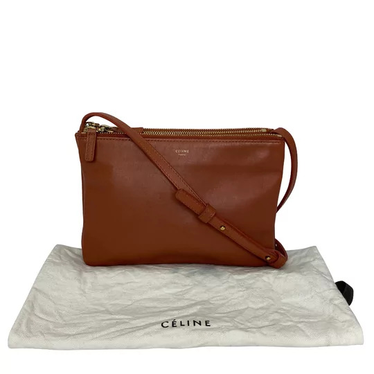 Bolsa Céline Trio Couro Caramelo e Botões Dourados