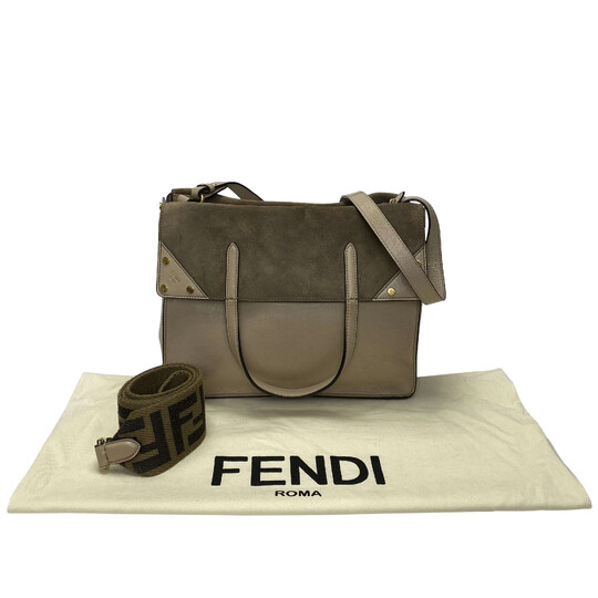 Bolsa Fendi Camurça e Couro Nude Moda plus size original brechó desapego desapego de luxo segunda mão second hand usado usado e bom estado conservado bolsas usadas bolsas segunda mao etiqueta unica enjoei peguei bode bolsas conservadas cansei vendi troca de luxo