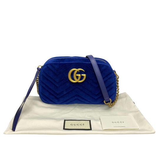 Bolsa Gucci GG Marmont Veludo Azul Moda plus size original brechó desapego desapego de luxo segunda mão second hand usado usado e bom estado conservado bolsas usadas bolsas segunda mao etiqueta unica enjoei peguei bode bolsas conservadas cansei vendi troca de luxo