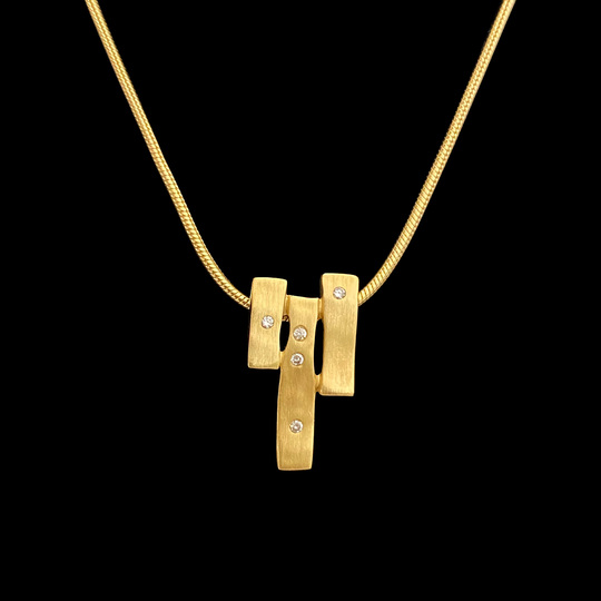 Conjunto H.Stern composto de colar e par de brincos, integrantes da linha Motion. Ambos são confeccionados em ouro amarelo 18k com diamantes. Brincos com 0.06 ct e colar com 0.03 ct. Tamanho colar: 45 cm