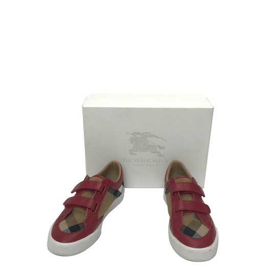 Tênis Burberry House Check Vermelho burberry Moda plus size original brechó desapego desapego de luxo segunda mão second hand usado usado e bom estado conservado bolsas usadas bolsas segunda mao etiqueta unica enjoei peguei bode bolsas conservadas cansei vendi troca de luxo