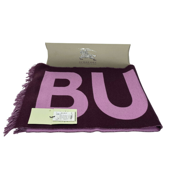 Pashmina Burberry confeccionada 100% em lã nas cores roxa e rosa. Tamanho: 188 x 33 cm
