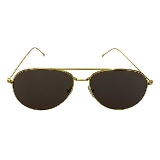 Óculos Illesteva Linate. O modelo aviador é confeccionado em metal dourado. Possui lentes na cor cor marrom, ponte dupla e hastes finas.