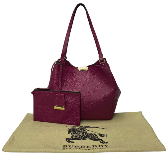Bolsa Burberry confeccionada em couro na cor rosa. O modelo traz duas alças de ombros, ferragens douradas, fechamento principal por botão de pressão e tira de ajuste para tamanho da bolsa. Acompanha nécessaire interno removível com fechamento por zíper.