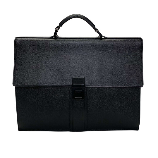 Pasta Executiva Burberry confeccionada em couro na cor preta. O modelo possui alça de mão e fecho por aba com dispositivo de encaixe.
