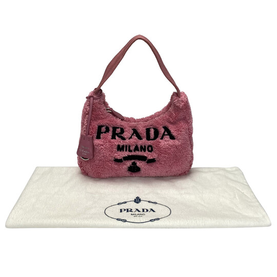 Bolsa Prada Rosa Moda plus size original brechó desapego desapego de luxo segunda mão second hand usado usado e bom estado conservado bolsas usadas bolsas segunda mao etiqueta unica enjoei peguei bode bolsas conservadas cansei vendi troca de luxo Bolsa Re-Edition 2000 Terry Mini