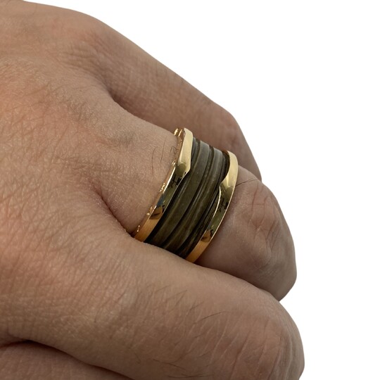 Anel Bvlgari B.Zero 1. O modelo é confeccionado em ouro rose com cerâmica marrom. Tamanho: 66 (refere-se ao aro 27) `