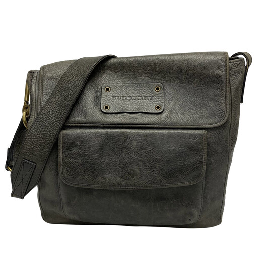 Bolsa Burberry Crossbody confeccionada em couro estonado na cor preta. O modelo apresenta alça longa ajustável, ferragens dourada envelhecidas, bolso frontal e fecho principal por botão de pressão.