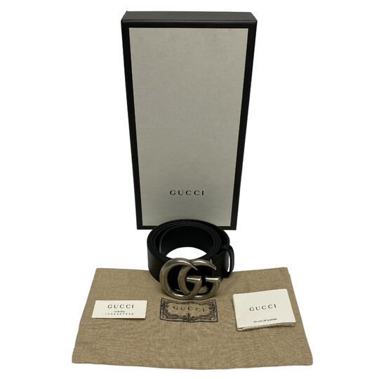 Cinto Gucci GG Couro Preto Moda plus size original brechó desapego desapego de luxo segunda mão second hand usado usado e bom estado conservado bolsas usadas bolsas segunda mao etiqueta unica enjoei peguei bode bolsas conservadas cansei vendi troca de luxo