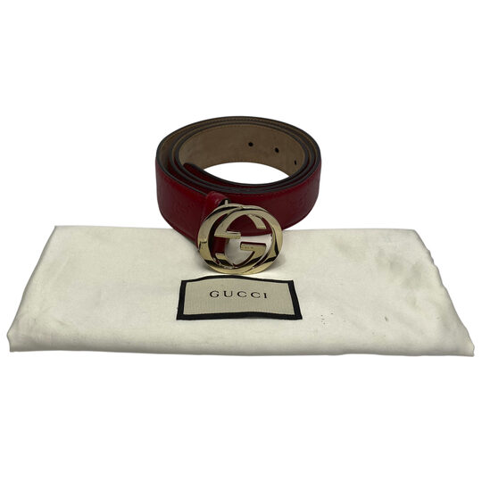 Cinto Gucci GG Monograma Vermelho Moda plus size original brechó desapego desapego de luxo segunda mão second hand usado usado e bom estado conservado bolsas usadas bolsas segunda mao etiqueta unica enjoei peguei bode bolsas conservadas cansei vendi troca de luxo