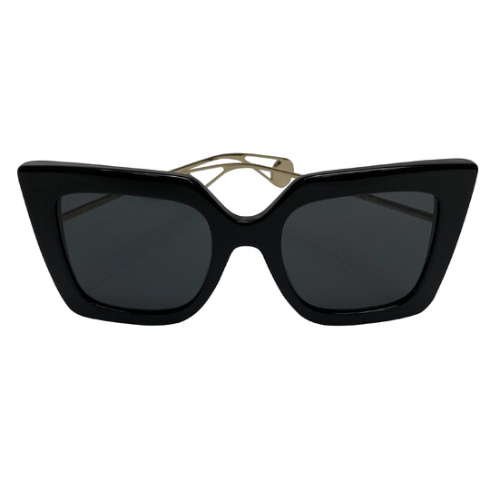 Óculos de Sol Gucci GG 0435S. O modelo é confeccionado em acetato preto com hastes douradas em metal. Possui armação oversized.
