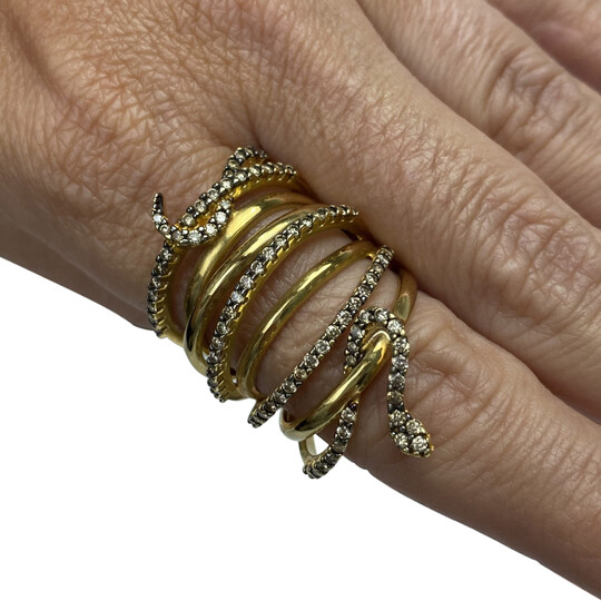 Anel Vivara Serpente confeccionado em ouro amarelo 18k com diamantes. Aro: 18