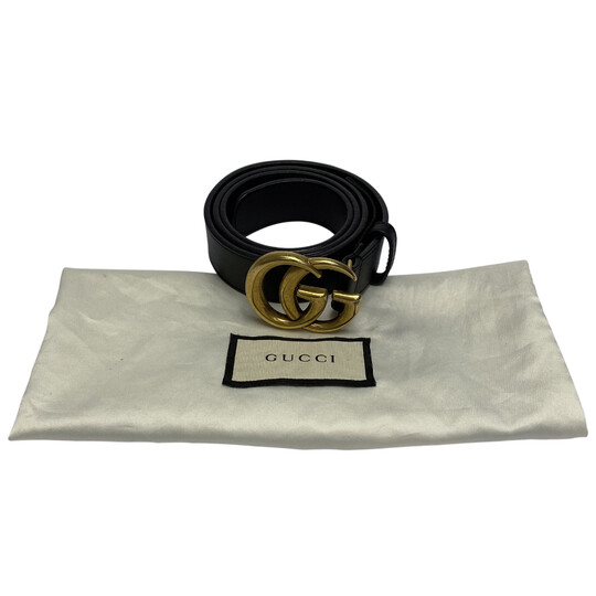 Cinto Gucci GG Couro Preto Moda plus size original brechó desapego desapego de luxo segunda mão second hand usado usado e bom estado conservado bolsas usadas bolsas segunda mao etiqueta unica enjoei peguei bode bolsas conservadas cansei vendi troca de luxo