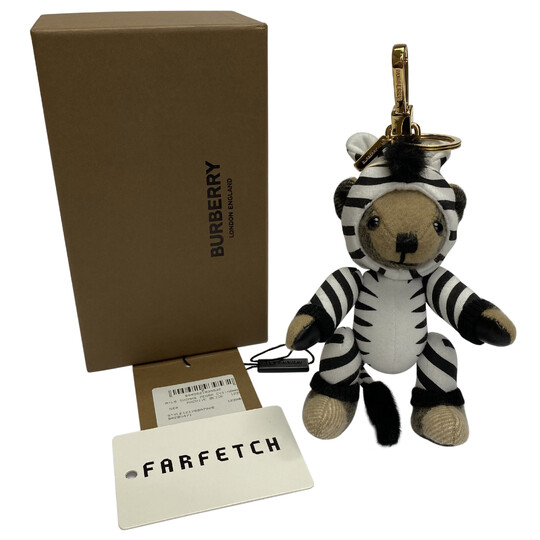 Chaveiro Burberry Thomas confeccionado em 100% em cashmere no tradicional xadrez da marca, com ferragens douradas e detalhe de roupinha com estampa de zebra. Comprimento: 12 cm