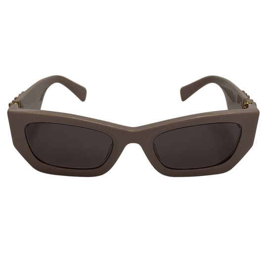 Óculos de sol Miu - Glimpse. O modelo de formato retangular é feito em acetato. Possui novo logotipo Miu Miu vertical integrado na dobradiça das hastes grossas.