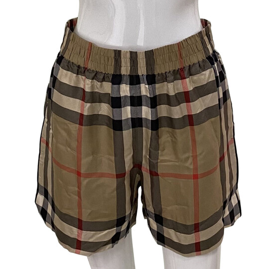 Shorts Burberry confeccionado 100% em seda no tradicional xadrez da marca. O modelo traz elástico na cintura.
