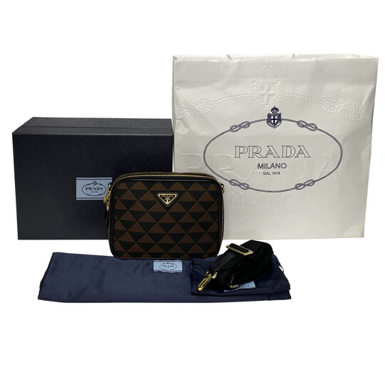 Bolsa Prada Crossbody Symbole com Bordado Moda plus size original brechó desapego desapego de luxo segunda mão second hand usado usado e bom estado conservado bolsas usadas bolsas segunda mao etiqueta unica enjoei peguei bode bolsas conservadas cansei vendi troca de luxo