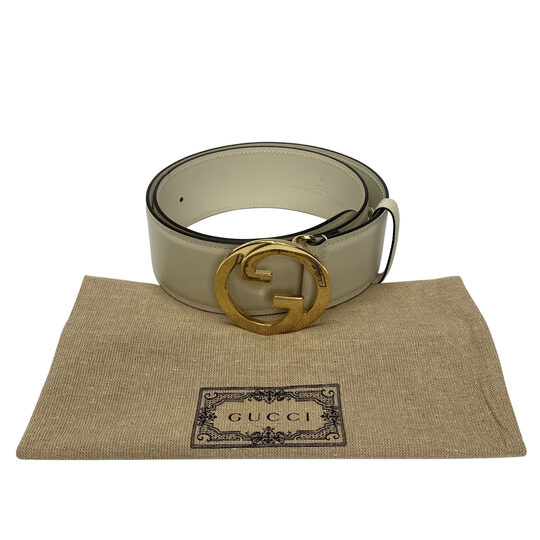 Cinto Gucci GG Couro Off White Moda plus size original brechó desapego desapego de luxo segunda mão second hand usado usado e bom estado conservado bolsas usadas bolsas segunda mao etiqueta unica enjoei peguei bode bolsas conservadas cansei vendi troca de luxo