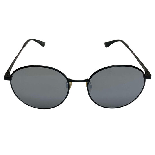 Óculos de Sol Saint Laurent - SL136K. O modelo de formato redondo é confeccionado em metal preto e traz lentes espelhadas.