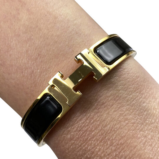 Bracelete Hermès Clic Clac H Preto Moda plus size original brechó desapego desapego de luxo segunda mão second hand usado usado e bom estado conservado bolsas usadas bolsas segunda mao etiqueta unica enjoei peguei bode bolsas conservadas cansei vendi troca de luxo