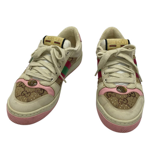 Tênis Gucci Screener GG Crystal Moda plus size original brechó desapego desapego de luxo segunda mão second hand usado usado e bom estado conservado bolsas usadas bolsas segunda mao etiqueta unica enjoei peguei bode bolsas conservadas cansei vendi troca de luxo