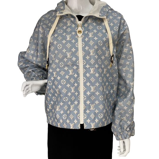 Jaqueta Louis Vuitton feita 100% em poliéster com estampa de monograma da marca. O modelo possui fechamento por zíper e capuz. Tamanho: 36