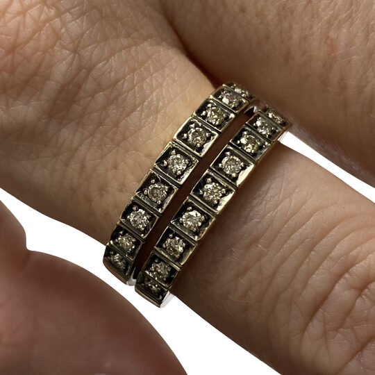 Anel HStern 2 Aros, integrante da Coleção Stars. O modelo é confeccionado em ouro nobre 18k e possui diamantes cognações. Aro: 20