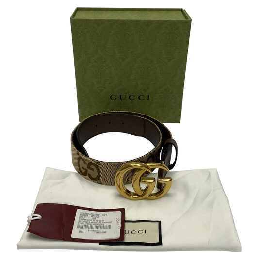 Cinto Gucci GG Canvas e Marrom Moda plus size original brechó desapego desapego de luxo segunda mão second hand usado usado e bom estado conservado bolsas usadas bolsas segunda mao etiqueta unica enjoei peguei bode bolsas conservadas cansei vendi troca de luxo