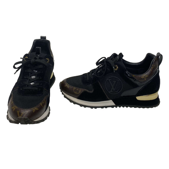 Tênis Louis Vuitton Run Away confeccionado em suede na cor preta com detalhes em canvas monograma. O modelo possui solado emborrachado, detalhe em dourado na parte detrás e fechamento por cadarço.