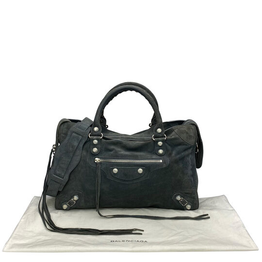 Bolsa Balenciaga Camurça Cinza Moda plus size original brechó desapego desapego de luxo segunda mão second hand usado usado e bom estado conservado bolsas usadas bolsas segunda mao etiqueta unica enjoei peguei bode bolsas conservadas cansei vendi troca de luxo