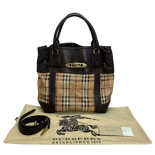 Bolsa Burberry Xadrez Tradicional e Couro Marrom Moda plus size original brechó desapego desapego de luxo segunda mão second hand usado usado e bom estado conservado bolsas usadas bolsas segunda mao etiqueta unica enjoei peguei bode bolsas conservadas cansei vendi troca de luxo