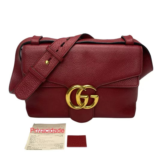Bolsa Gucci GG Marmont Shoulder Vermelha gucci Moda plus size original brechó desapego desapego de luxo segunda mão second hand usado usado e bom estado conservado bolsas usadas bolsas segunda mao etiqueta unica enjoei peguei bode bolsas conservadas cansei vendi troca de luxo
