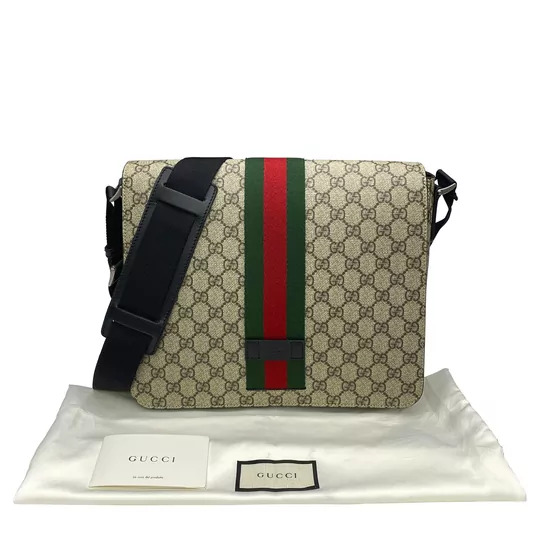 Bolsa Gucci GG Supreme Web Flap Messenger Bag