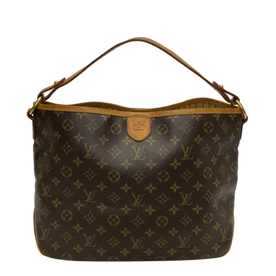 Bolsa Louis Vuitton Delightful PM. O modelo confeccionado em canvas com estampa de monograma da marca possui acabamento em couro caramelo, alça única estruturada, espaço interno amplo com um bolso de fecho em zíper e fecho central por mosquetão.