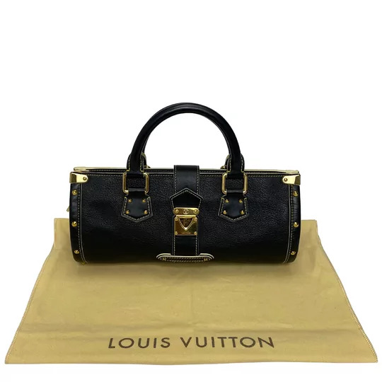 Bolsa Louis Vuitton Epanoui PM confeccionada em couro suhali preto com detalhes em pespontos em linha amarela. O modelo retangular estruturado possui alça dupla de ombro, detalhe de spikes dourados e fechamento principal com zíper e dispositivo de encaixe. Conta com um bolso interno.