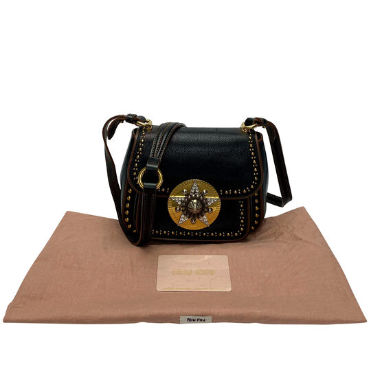 Bolsa Miu Miu Couro Preto - Estrela e Cristais bolsa miu miu couro preto estrela cristais Moda plus size original brechó desapego desapego de luxo segunda mão second hand usado usado e bom estado conservado bolsas usadas bolsas segunda mao etiqueta unica enjoei peguei bode bolsas conservadas