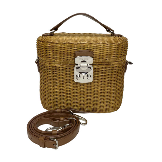 Bolsa Miu Miu em Vime Moda plus size original brechó desapego desapego de luxo segunda mão second hand usado usado e bom estado conservado bolsas usadas bolsas segunda mao etiqueta unica enjoei peguei bode bolsas conservadas cansei vendi troca de luxo