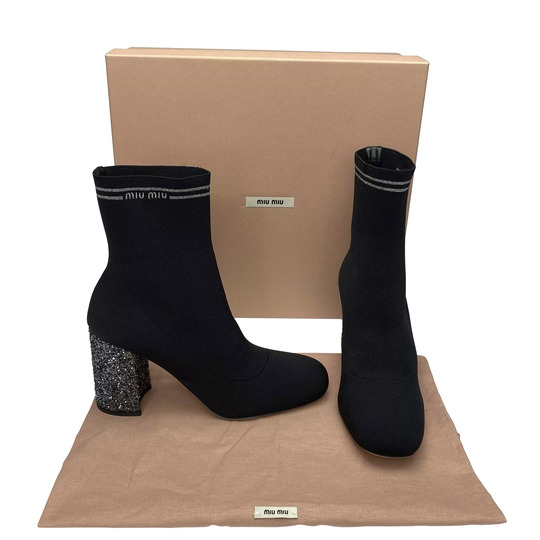 Bota Meia Miu Miu Preta com Gliter