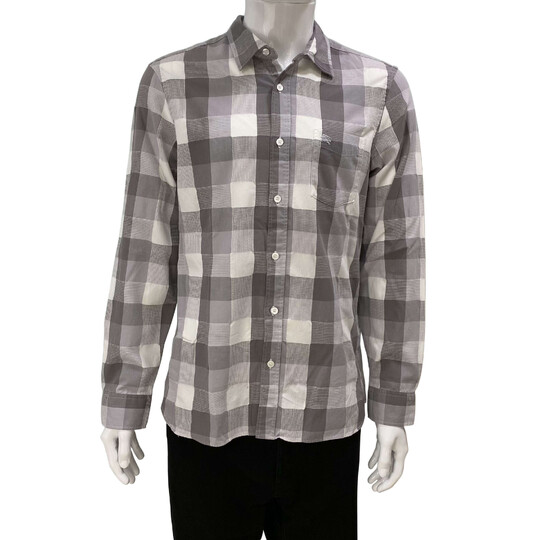 Camisa Burberry confeccionada 100% em algodão na cor off white com estampa xadrez em tons de cinza. Possui manga longa e fechamento por botões. Tamanho: G